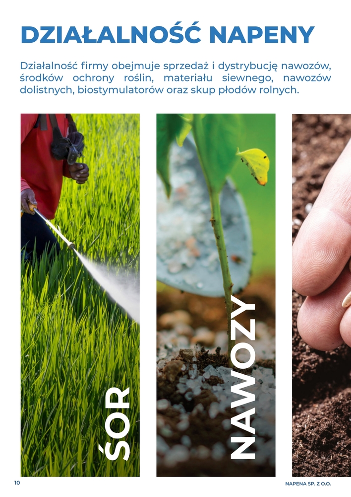 Środki ochrony roślin, nawozy mineralne, nawozy dolistne i biostymulatory, materiał siewny, obrót płodami rolnymi, materiały do produkcji i hodowli zwierząt, pasze i koncentraty.